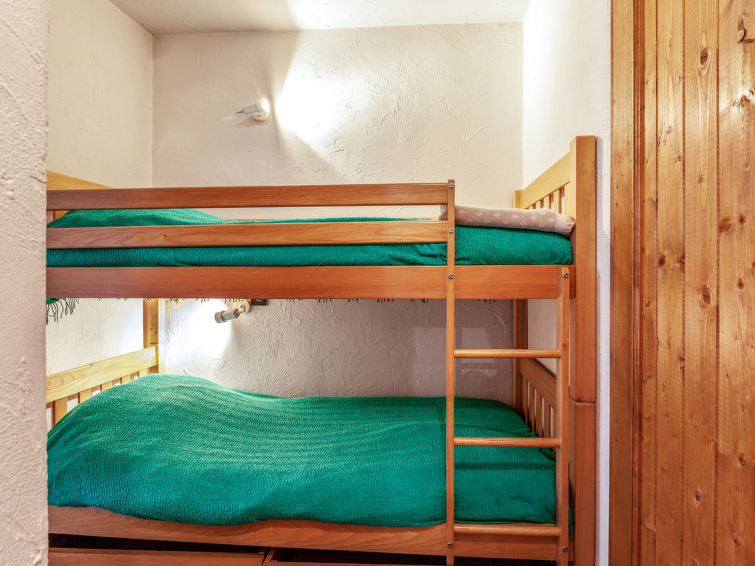Appartement 2-kamers 33 m2 op de 1e verdieping. Hal met 1 x 2 stapelbedden. 1 kamer met 1 2-pers bed. Woon-/eetkamer met TV en DVD. Uitgang naar het balkon. Kookhoek (2 keramische glas kookplaten, broodrooster, waterkoker, magnetron, elektrische koffiemachine, raclette oven) met eettafel. Badkamer, aparte WC. Elektrische verwarming. Balkonmeubilair. Uitzicht op de bergen. Ter beschikking: Internet (Internet (WiFi), extra). Koelkast zonder vriesvak, niet rokers woning.