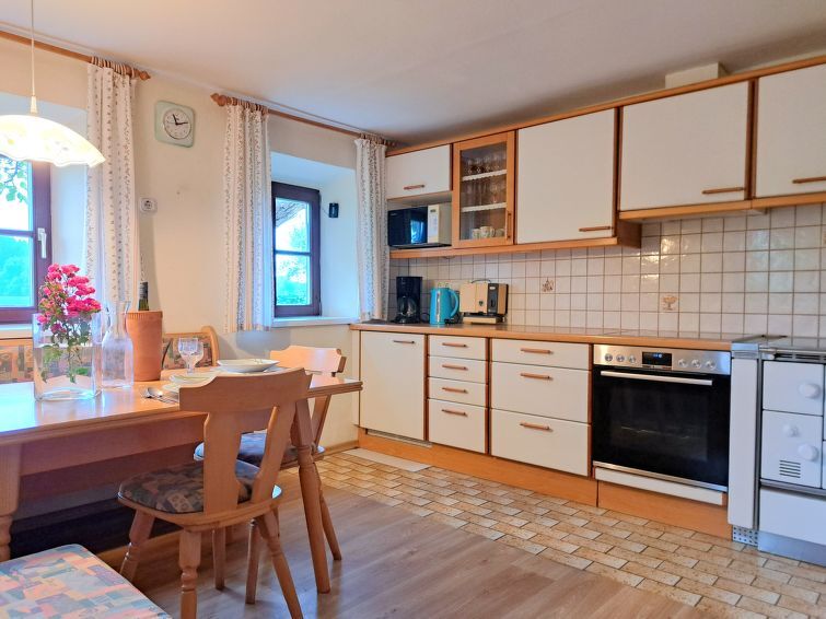 "Lindnerhof", woonboerderij 4-kamers 130 m2. Rustiek en gezellig ingericht: hal. Woon-/eetkamer. Groot keuken (4-pits kookplaat, oven, afwasmachine, waterkoker, diepvriezer) met eethoek. Bad/douche/WC. Bovenverdieping: 2 2-pers. kamers. 1 kamer met 2 bedden. Houten vloeren. Mooi uitzicht op het landschap. Ter beschikking: wasmachine (extra). Niet rokers woning.