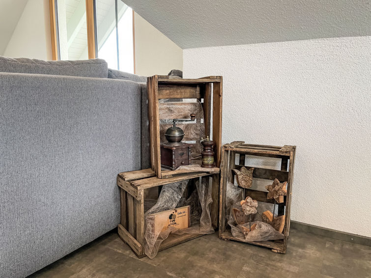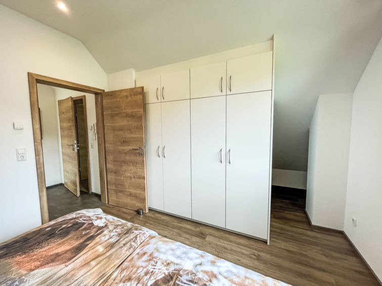 "Panoramablick", appartement 2-kamers 65 m2, op de bovenste verdieping. Het objekt is geschikt voor 2 volwassenen + 2 kinderen. Licht, gedeeltelijk afgeschuinde daken, modern en gezellig ingericht: woon-/slaapkamer met 1 2-pers divanbed (140 cm, lengte 200 cm), Sat-TV (Flatscreen TV). Uitgang naar het balkon. 1 kamer met 1 2-pers bed (2 x 90 cm, lengte 200 cm). Open keuken (oven, afwasmachine, 4 keramische glas kookplaten, broodrooster, waterkoker, elektrische koffiemachine) met eettafel. Douche/WC. Verwarming. Klein balkon. Balkonmeubilair. Mooi panoramazicht op de bergen. Ter beschikking: Internet (WiFi, gratis). Parkeerplaats (1 Auto) bij het huis. Niet rokers woning. Rookmelders.