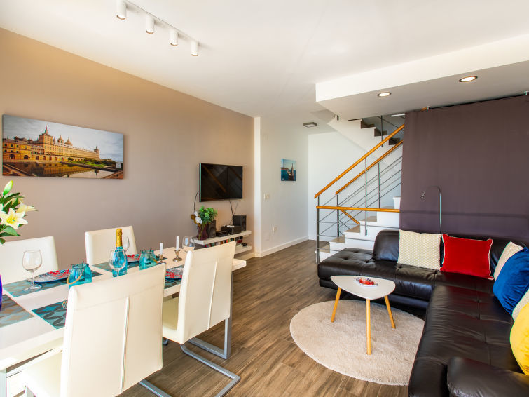 Torrox Costa: Moderne, comfortabel rijtjeshuis "Cristobal", van 3 verdiepingen. 28 huizen in de plaats. 3.5 km van het centrum van Torrox Costa, aan de rand van de plaats, villa wijk, 1.7 km van zee, 1 km van het strand, op het zuiden. Voor medegebruik: openluchtzwembad rond omheind (100 - 200 cm diepte, seizoensgebonden beschikbaarheid: 31.Dec. - 01.Jan.). Buitendouche. In het huis: Internet (WiFi), solarium. Winkel 3.5 km, levensmiddelenwinkel 3.5 km, supermarkt 3.5 km, winkelcentrum 25 km, restaurant 1 km, bar 1 km, bakkerij 3.5 km, café 1 km, voetgangersgebied 3.5 km, fietsverhuur 7 km, biertuin 1 km, bushalte 1 km, treinstation "Malaga" 50 km, veerboot "Malaga" 50 km. Jachthaven 25 km, jachthaven 25 km, golfterrein (18 holes) 20 km, surfschool 25 km, zeilschool 25 km, tennis 7 km, manege 7 km. Attracties in de buurt: Torrox, Nerja, Competa, Torre del Mar, Frigiliana, Maro. Bekende skigebieden kunnen gemakkelijk worden bereikt: Sierra Nevada. Bekende meren kunnen gemakkelijk worden bereikt: La Viñuela. Wandelgebied Sierra Tejeda, Sierra Almijara. Auto noodzakelijk. Baby uitrusting (incl.). De eigenaar accepteert geen jeugdgroepen. Laden en lossen van de baggage is mogelijk bij het huis.