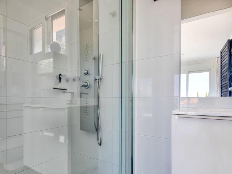 "Mareselva", villa 4-kamers 102 m2 op 2 verdiepingen, op verhoogde begane grond. Licht, gedeeltelijk gerenoveerd in 2012, zeer comfortabel en gezellig ingericht: woon-/eetkamer met open haard, Sat-TV, Digitale TV, air-conditioning en heteluchtverwarming. Uitgang naar het terras, naar het zwembad. 1 kamer met 1 2-pers bed, air-conditioning en heteluchtverwarming. 1 2-pers. kamer met 2 bedden, air-conditioning en heteluchtverwarming. Open keuken (mini-oven, afwasmachine, 3 keramische glas kookplaten, broodrooster, magnetron, diepvriezer, elektrische koffiemachine, combimagnetron). Douche/WC. Bovenverdieping: (buitentrap), 1 kamer met 1 2-pers bed (160 cm, lengte 200 cm), douche/WC, air-conditioning en heteluchtverwarming. Uitgang naar het terras. Groot terras gedeeltelijk overdekt, ruime zithoek in de tuin, groot tuin, prieel. Terrasmeubelen, barbecue, ligstoelen. Mooi panoramazicht op zee, de bergen, het zwembad en de plaats. Ter beschikking: wasmachine, strijkijzer, kinderstoel, kinderbed, haardroger. Internet (WiFi, gratis). Parkeerplaats. AT-422380-A // Reg. Nr.: ESFCTU00000305500049138600000000000000000AT-445567-A7